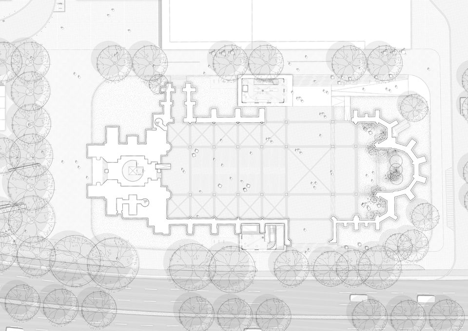 Das Mahnmal St. Nikolai liegt an der Schnittstelle von Innenstadt, Speicherstadt und HafenCity. Der Entwurf schafft hier eine neue museale Adresse mit stadträumlicher Präsenz, die einlädt, ohne die Wirkung der Ruine zu überlagern. Der schlanke, vertikal akzentuierte Pavillon steht mit minimalem Fußabdruck respektvoll am Rand des Plateaus, sichtbar aus allen Richtungen. Sein offenes Erdgeschoss verknüpft Platz und Denkmal, die transluzente Fassade filtert Licht und Schatten – Sinnbild einer Erinnerung, die spürbar bleibt, ohne sich vollständig zu offenbaren. Die Innenräume bieten Raum für Bildung, Begegnung und Reflexion. Flexible Strukturen ermöglichen wechselnde Nutzungen und fördern eine lebendige Erinnerungskultur. Im Gewölbekeller schaffen vier transparente Haus-in-Haus-Kuben neue Räume, ohne in die historische Substanz einzugreifen – sie schützen, klimatisieren und bringen Licht in die Tiefe. Ein barrierefreies Wegenetz verknüpft Nord- und Südzugang, Rasenspur und Chorbereich greifen die historische Struktur auf. Konstruktion und Material folgen dem Prinzip der Angemessenheit: kompakt, langlebig, energieeffizient. So entsteht ein Ort, der Geschichte achtet und Zukunft eröffnet – ein offenes Zeichen für Erinnerung, Bildung und Dialog.